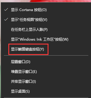 1.右鍵點(diǎn)擊任務(wù)欄空白處,點(diǎn)擊“顯示觸摸鍵盤(pán)按鈕”。