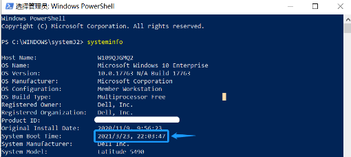 2.然后輸入systeminfo后按下回車鍵,就可以看到系統(tǒng)啟動時間。