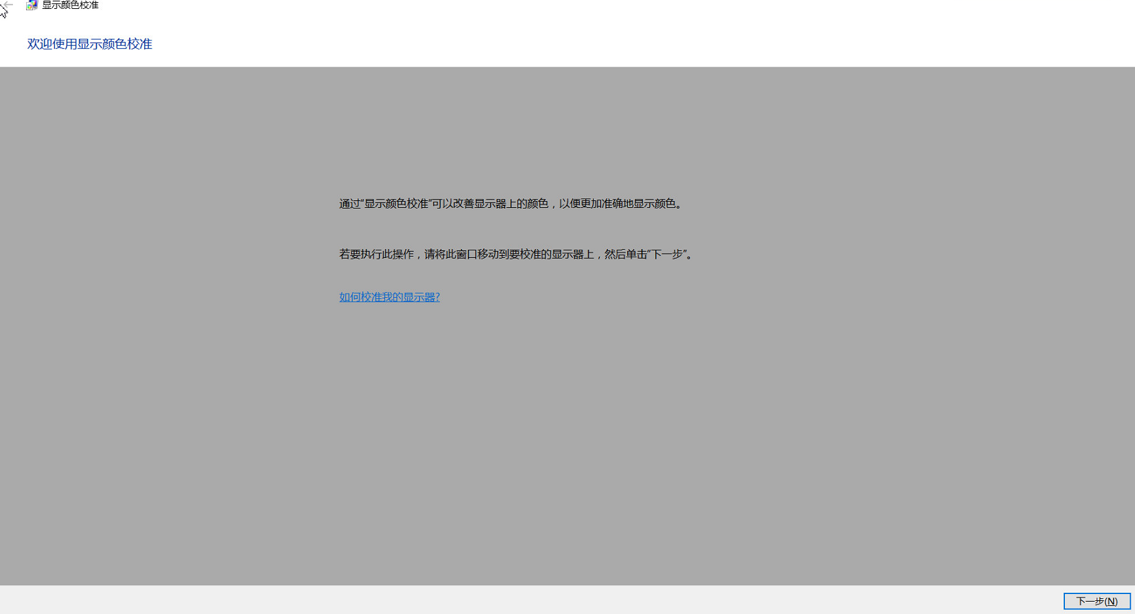 2.進(jìn)入校準(zhǔn)顏色界面后,前面部分的設(shè)置,非專業(yè)需求,可以不需要做任何更改,一直點(diǎn)擊下一步即可,以避免顯示顏色等故障。