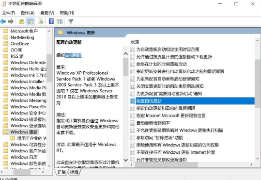 2.依次選擇計算機配置——>管理模板——>Windows 組件,然后找到“Windows 更新”選項 雙擊“配置自動更新”。