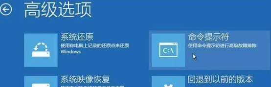 1.重復(fù)強制關(guān)機進入Win10系統(tǒng)的故障修復(fù)界面,進入「高級選項」→「命令提示符」。