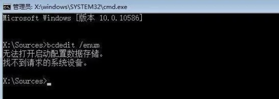 2.執(zhí)行:01bcdedit /enum命令,若如下圖提示,說明引導(dǎo)記錄已經(jīng)損壞。
