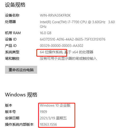 5.如圖所示,就是本機的win10系統(tǒng)的詳細信息了,版本是win10 64位系統(tǒng) 企業(yè)版。