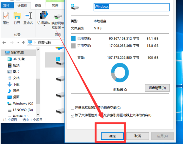 7.點擊界面右下方的“確定”,即可是否c盤內(nèi)存。