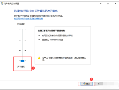 3.將左邊拉到最下面(從不通知),點(diǎn)擊確定。