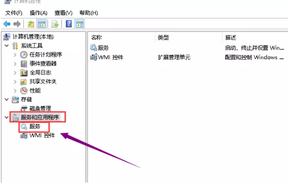 2.打開計(jì)算機(jī)管理界面,點(diǎn)擊“服務(wù)和應(yīng)用程序”-“服務(wù)”。