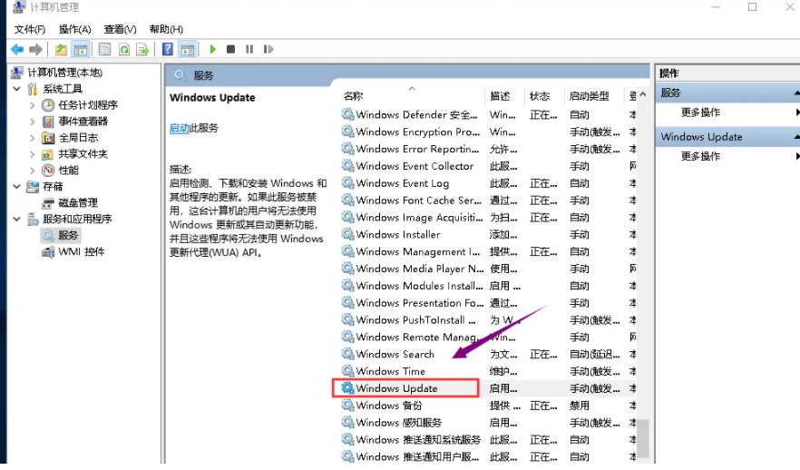 3.在列表中找到 Windows Update 服務(wù)項(xiàng).
