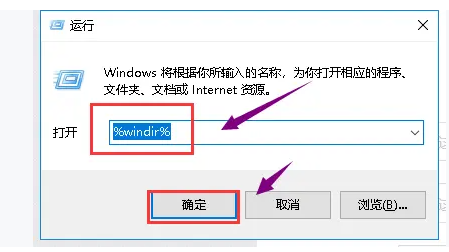 5.按住 “Win+R”快捷鍵,打開運(yùn)行對(duì)話框,輸入 %windir%。