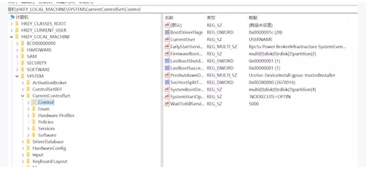 2.打開文件夾HKEY_LOCAL_MACHINE\SYSTEM\CurrentControlSet\Control,看右側(cè)是否有“StorageDevicePolicies”。