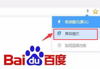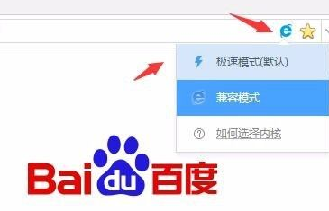 2、瀏覽器在默認(rèn)的情況下開啟了“極速模式”,現(xiàn)在點(diǎn)擊“兼容模式”,瀏覽器就開啟了兼容模式。