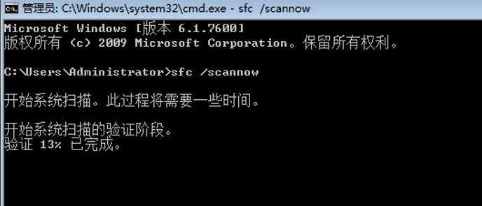 3、此時(shí),win7系統(tǒng)開始掃描系統(tǒng)文件,等待掃描完成。