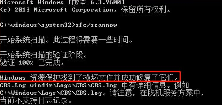 4、如果無損壞的系統(tǒng)文件,電腦會(huì)提示“windows資源保護(hù)未找到任何完整性沖沖突”;反之,電腦會(huì)對(duì)損壞的文件進(jìn)行修復(fù),修復(fù)成功之后會(huì)彈出“windows資源保護(hù)找到了損壞文件并成功修復(fù)了它們”的提示信息。