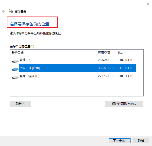 4、選擇你想要保存?zhèn)浞莸奈恢茫x擇好之后點(diǎn)擊“下一步”。