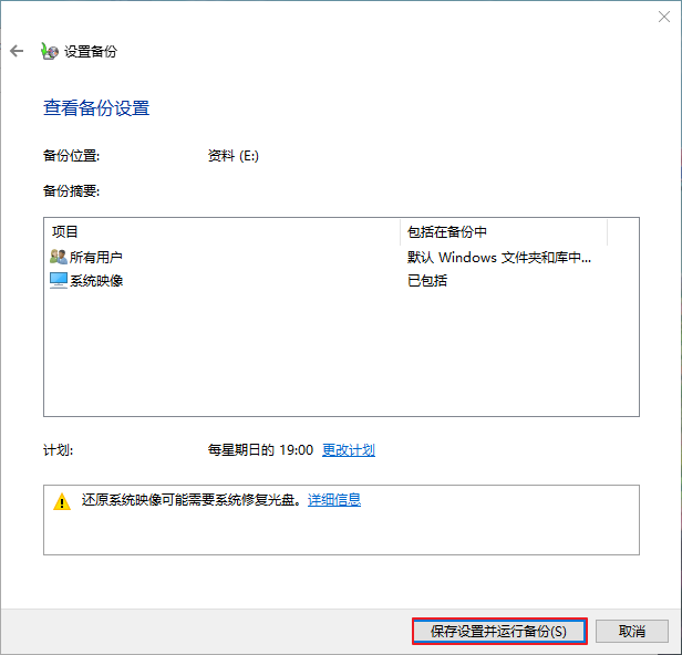 7、接下來(lái)打開(kāi)“查看備份設(shè)置”,這里顯示了備份的信息,確認(rèn)無(wú)誤后,點(diǎn)擊“保存設(shè)置并運(yùn)行備份”,最后等待備份完成即可。