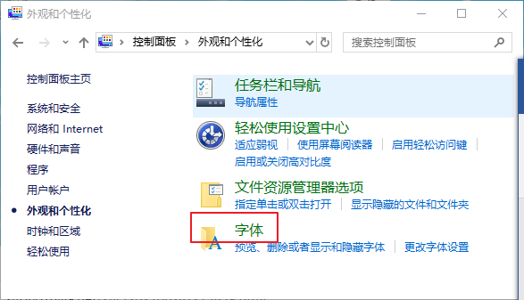 3、點(diǎn)擊“外觀和個性化”,選擇“字體”。