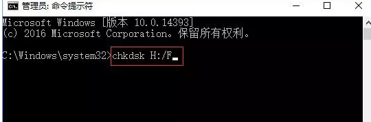 4、chkdsk H:/F,(H:即sd卡盤符,/F是修復(fù)參數(shù)。),當(dāng)sd卡修復(fù)完成后,查看一下TF卡的屬性,能顯示容量就說明修復(fù)成功。