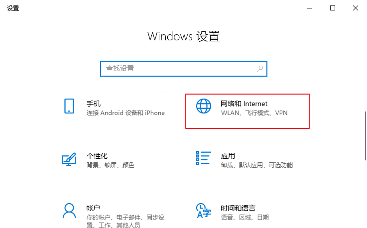 1、使用win+i打開windows設(shè)置窗口,點(diǎn)擊打開“網(wǎng)絡(luò)和internet”。