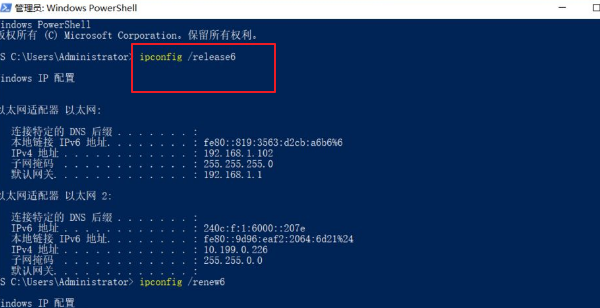 3、再輸入“ipconfig /renew6”回車,ipv6即可連接。
