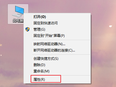 1、右鍵點(diǎn)擊系統(tǒng)桌面“此電腦”圖標(biāo),選擇“屬性”打開(kāi)。