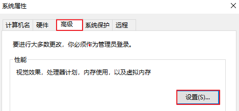 3、切換到“高級(jí)”菜單中,點(diǎn)擊性能“設(shè)置”。