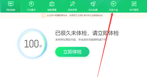 1、如果你的電腦安裝了360安全衛(wèi)士,則打開“功能大全”。