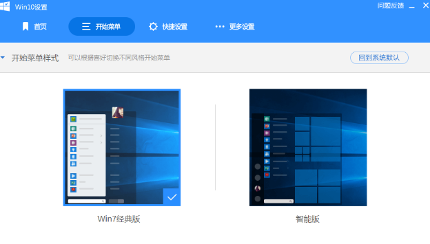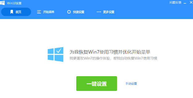 3、在這里我們點(diǎn)擊“一鍵設(shè)置”,將win10開始菜單設(shè)置成win7風(fēng)格的即可。