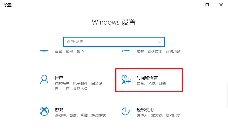 1、同時(shí)按下【win+i】組合鍵打開windows 設(shè)置界面,點(diǎn)擊進(jìn)入“時(shí)間和語言”。