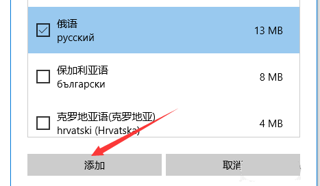 4、在語音包相關(guān)設(shè)置的窗口中,選擇一種語言來安裝該語言的所有語音,然后點(diǎn)擊下方的“添加”按鈕。