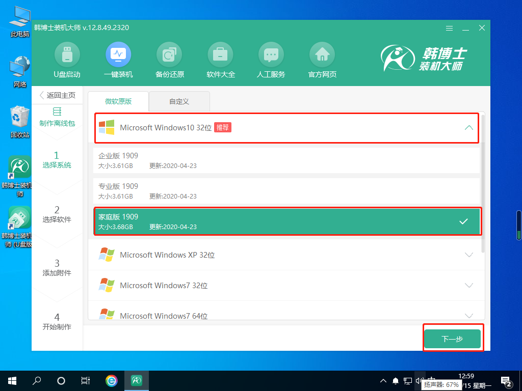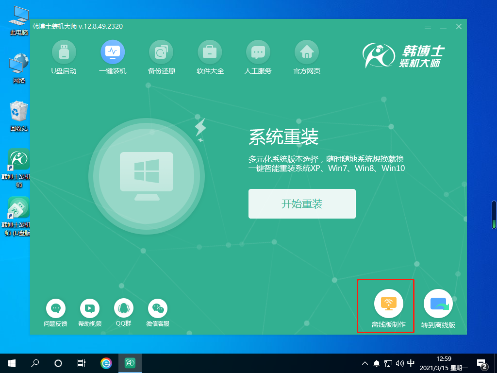 1.打開韓博士裝機大師開始進(jìn)入離線安裝包制作
