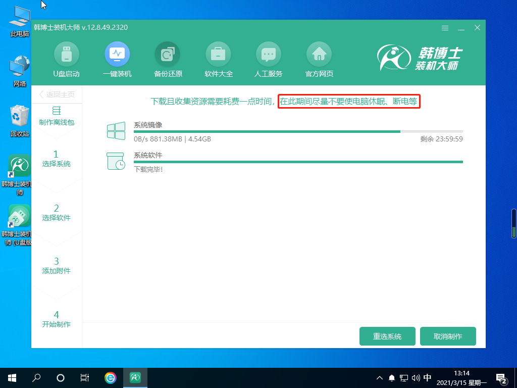 使用韓博士裝機大師下載離線安裝包的時候,關(guān)閉所有的殺毒工具