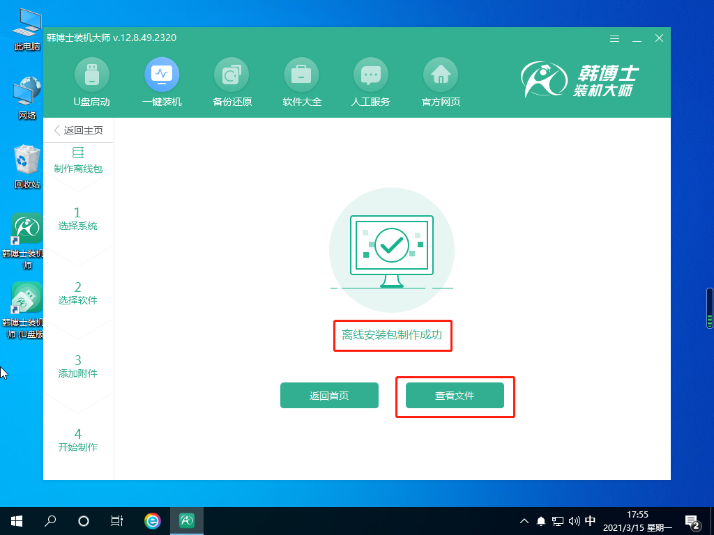 6.離線版安裝包制作成功,點擊“查看文件”找到系統(tǒng)文件的存放位置