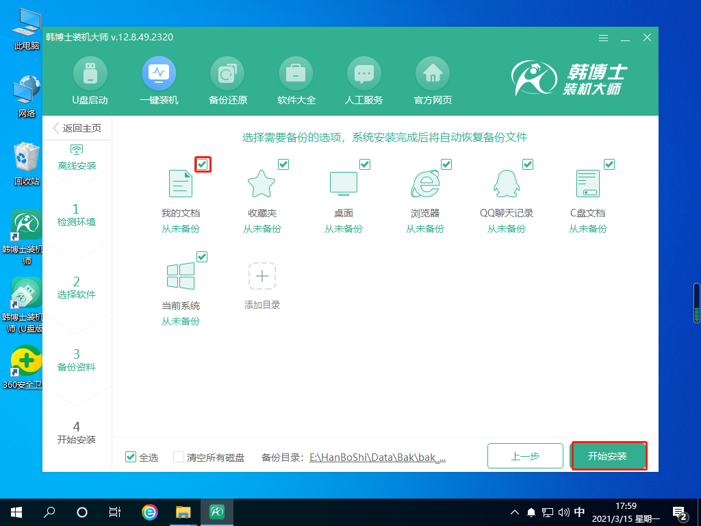 10.根據(jù)需要備份重要文件,點擊“開始安裝”繼續(xù)操作
