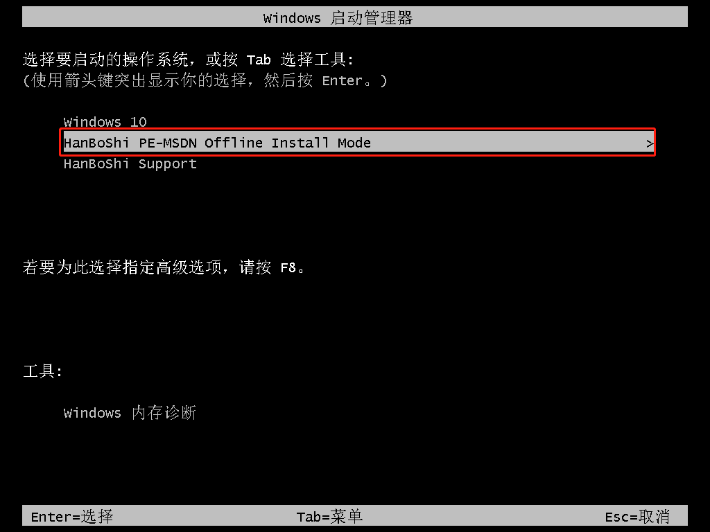 12. 在以下的啟動管理界面選擇韓博士PE系統(tǒng)回車進(jìn)入