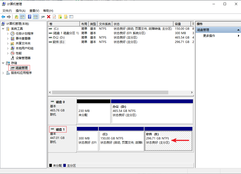 2.在管理界面中,點擊 “硬盤管理”,找到自己的移動硬盤,千萬不要選錯磁盤