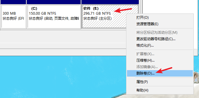 3. 在移動硬盤上單擊鼠標右鍵,然后在菜單中選擇刪除卷