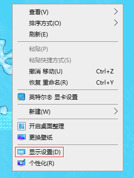1.在桌面空白處點擊鼠標(biāo)右鍵,選擇顯示設(shè)置