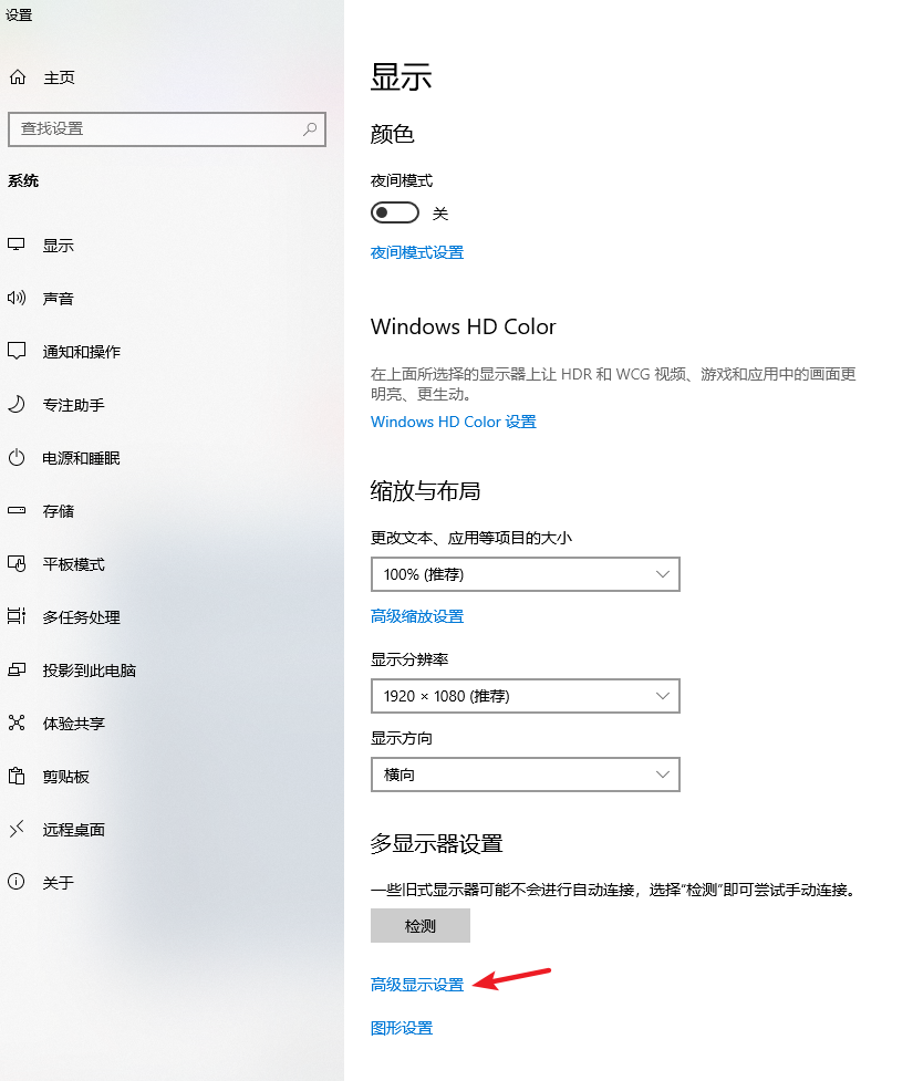 2.在顯示界面中點擊“高級顯示設(shè)置”