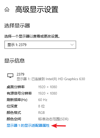 3. 在高級顯示設(shè)置界面中點擊顯示適配器屬性