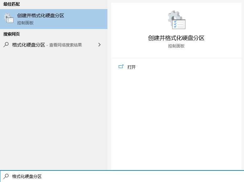 1. 按下 Win+Q,在彈出的搜索框中輸入“格式化分區(qū)”,選擇創(chuàng)建并格式化硬盤分區(qū)