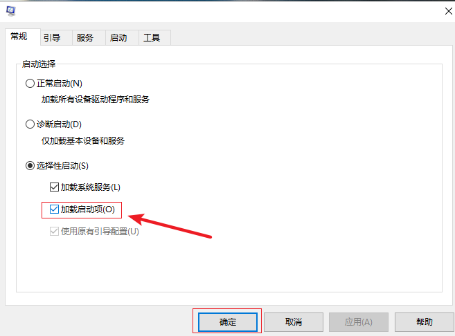 5. 然后進(jìn)入系統(tǒng)配置界面,將“加載啟動項”一欄取消勾選