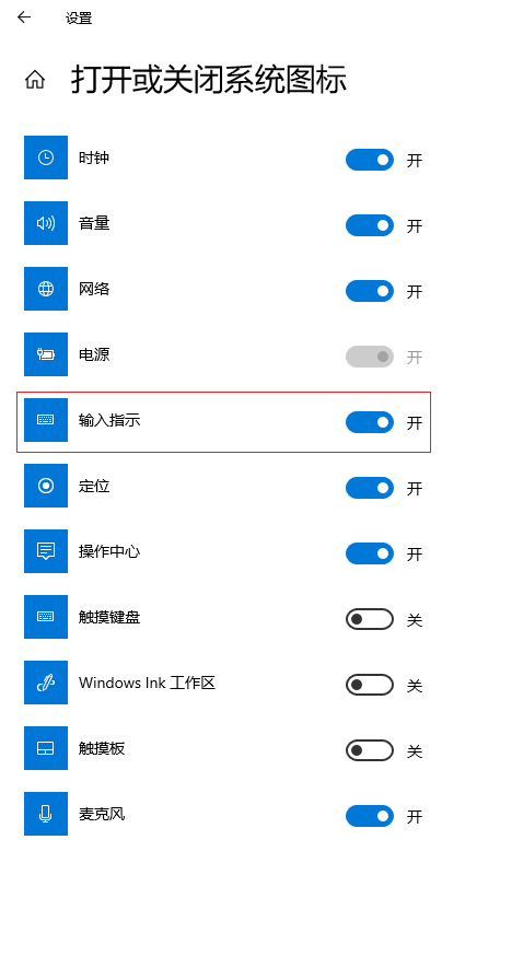 4.之后把“輸入指示”的開關(guān)向右滑動打開,這樣就會有語言欄了。
