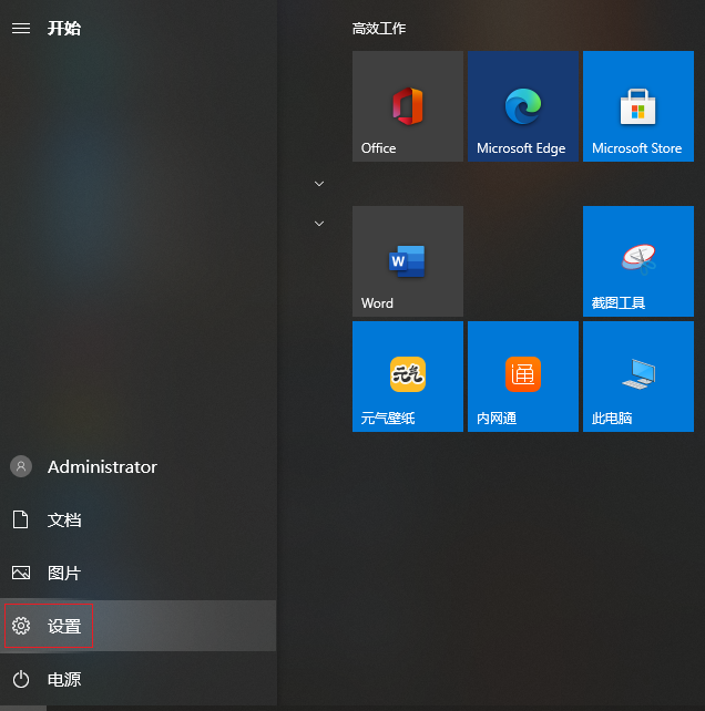1.在桌面按下【win】鍵,在彈出的界面中點擊“設(shè)置”