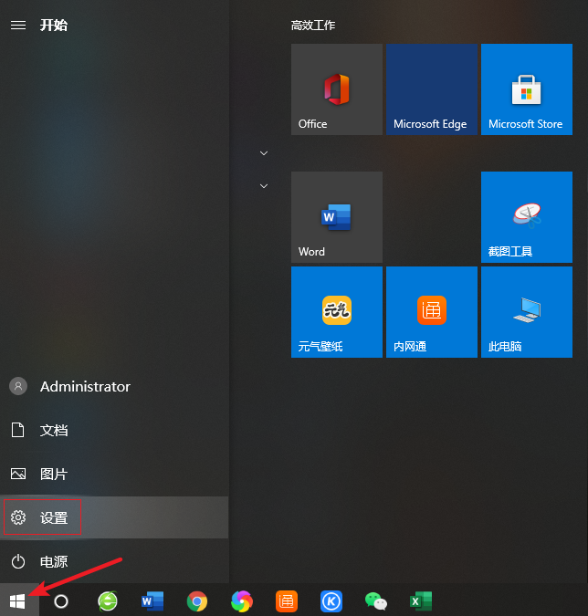 1.首先。在鍵盤(pán)按下【win】鍵,調(diào)出開(kāi)始界面,然后選擇【設(shè)置】