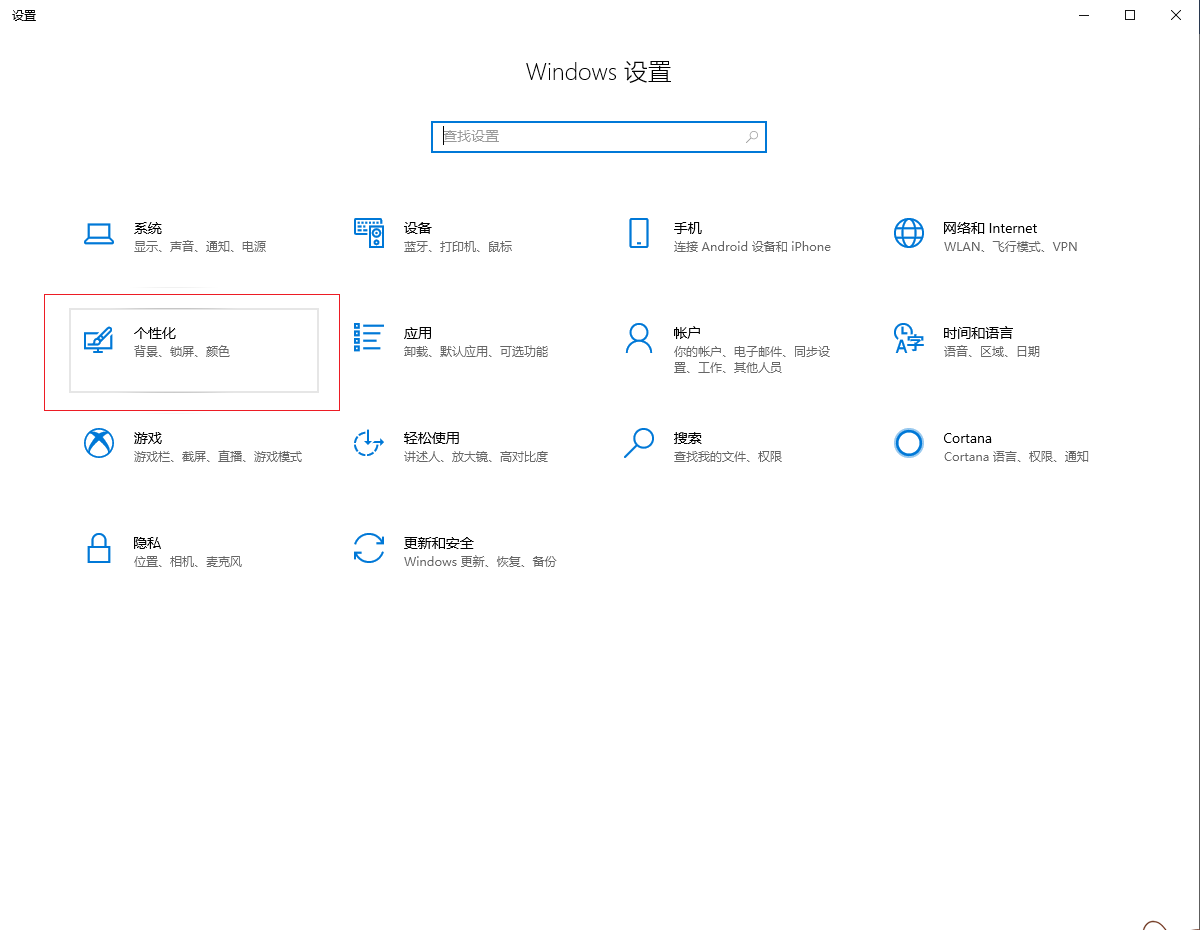 2.進(jìn)入設(shè)置界面,點(diǎn)擊【個(gè)性化】