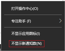 還有一種操作方法就是鼠標(biāo)右擊右下角的通知圖標(biāo),在彈出的菜單選擇【不顯示新通知數(shù)】即可。