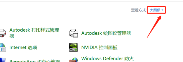 2.進(jìn)入控制面板后,在【查看方式】那選擇【大圖標(biāo)】。