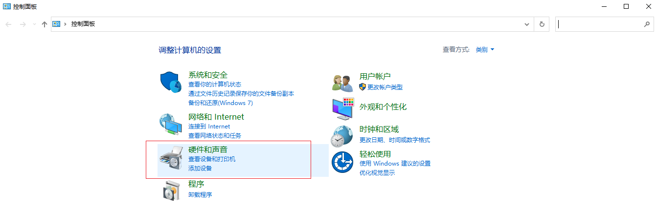 3.在控制面板界面選擇【硬件和聲音】,接著點(diǎn)擊【電源選項(xiàng)】。