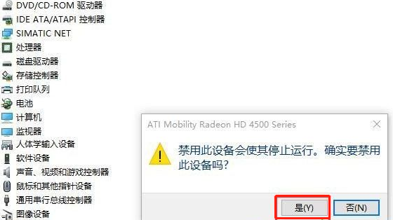 4.接著系統(tǒng)會提示設(shè)備將停止運行,點擊【是】按鈕,這樣集成顯卡就被禁用了。