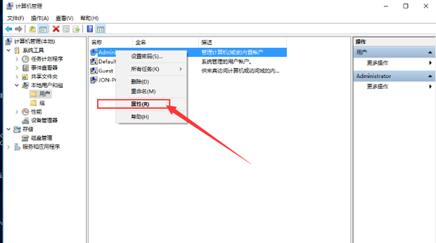 3.然后右擊Administrator,選擇【屬性】。