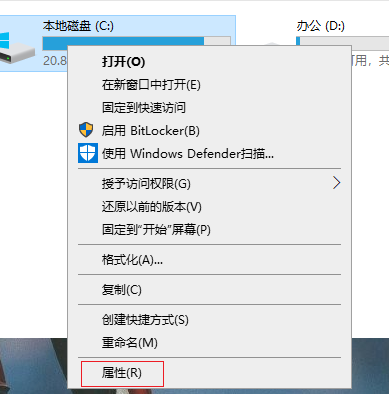 1.首先鼠標雙擊打開【此電腦】,進入系統(tǒng)盤界面,找到本地磁盤,鼠標右鍵點擊,選擇【屬性】。